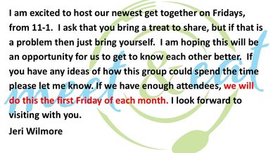Our next potluck is November 30th. Anyone interested in joining our congregation, please contact Pastor Lynn. All are welcome. Attendance November 16th — 86 Facebook & Youtube — 316